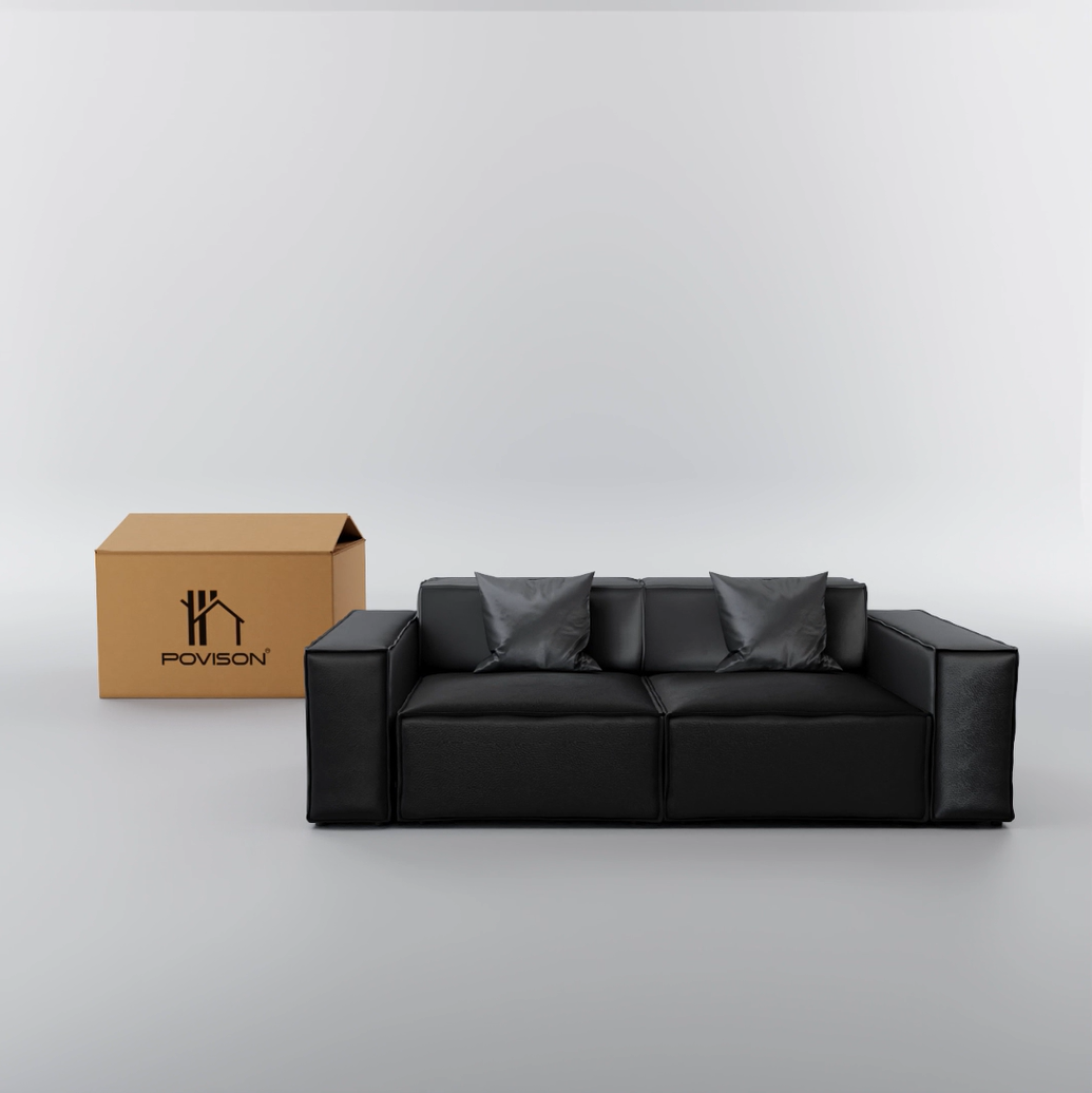 The black leather not only boasts visual appeal but also durability and ease of maintenance, particularly with children around, as it is resistant to scratches and moisture. The modular functionality is an excellent addition, allowing me to freely customize this sofa to my liking, much like providing a customizable seating solution for every space. The cushions achieve a perfect balance, offering both comfort and support.