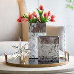 Modern Chic Silver and White Ceramic Vase, Versatile Home or Office Decor, Ideal for Displaying Fresh Flowers, Tall