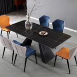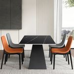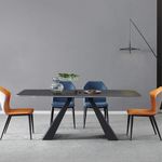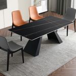 160Modern Minimalist Dining Table for 4, Black Matte Sintered Stone Tabletop, Splayed Table Leg