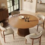 47" Mid-Century Modern Round Walnut Wood Dining Table, with Sculpted Fluted Pedestal Base