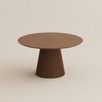 A statement of mid-century craftsmanship. The rich wood tabletop and grooved pedestal highlight a refined interplay of texture, tone, and classic design—crafted to enrich everyday living.