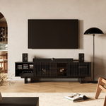 The center compartment with the built-in lighting has quickly become my favorite feature, as it not only highlights our audio equipment nicely but also adds a warm, ambient glow that makes the entire setup feel more intentional and refined.