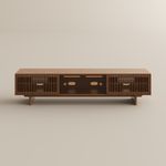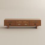 The wood finish is beautiful in person, with a warmth and depth that photos don’t fully capture, and the slatted design adds a lot of visual interest without making the piece feel too busy or overwhelming in the room.